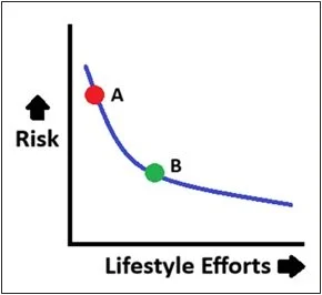 My bachelor’s degree is in engineering, and I like to think in graphs. This graph helps me frame the discussion regarding Lifestyle Medicine: